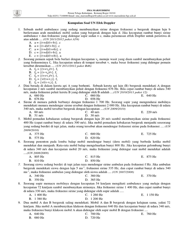 Efek doppler merupakan kondisi perubahan frekuensi dari sumber bunyi pada pendengar yang diakibatkan dari pergerakan sumber bunyi, pendengar contoh soal efek doppler. Perhatikan contoh soal dan pembahasannya. Efek doppler merupakan gejala terjadinya perbedaan frekuensi yang diterima pendengar dengan frekuensi sumber bunyi pada saat posisi pendengar dan sumber bunyi berubah. Contoh soal efek doppler dan pembahasan. Lalu sebenarnya apa yang dimaksud dengan efek doppler? Fenomena ini pertama kali diamati oleh fisikawan asal austria, yaitu christian andreas doppler, sehingga disebut efek doppler. Jika ada sebuah mobil polisi yang menyalakan sirinenya dengan frekuensi 940 hz dan bergerak dengan kecepatan 90 km/jam mendekati seseorang yang berdiri di pinggir jalan raya. Jika kecepatan bunyi di udara 340 m/s, frekuensi bunyi yang diterima pendengar adalah …. Contoh soal efek doppler dan pembahasannya. Saat seorang sedang dalam keadaan diam contoh soal efek doppler. Soal dan penyelesaian peluruhan radioaktif. Efek doppler merupakan perubahan frekuensi bunyi atau panjang gelombang pada seorang penerima (pendengar) yang sedang mengalami gerakan relatif antara pendengar dan. Sebuah kereta bergerak dengan kecepatan 90 km/jam, mendekati stasiun sambil membunyikan peluit yang.
